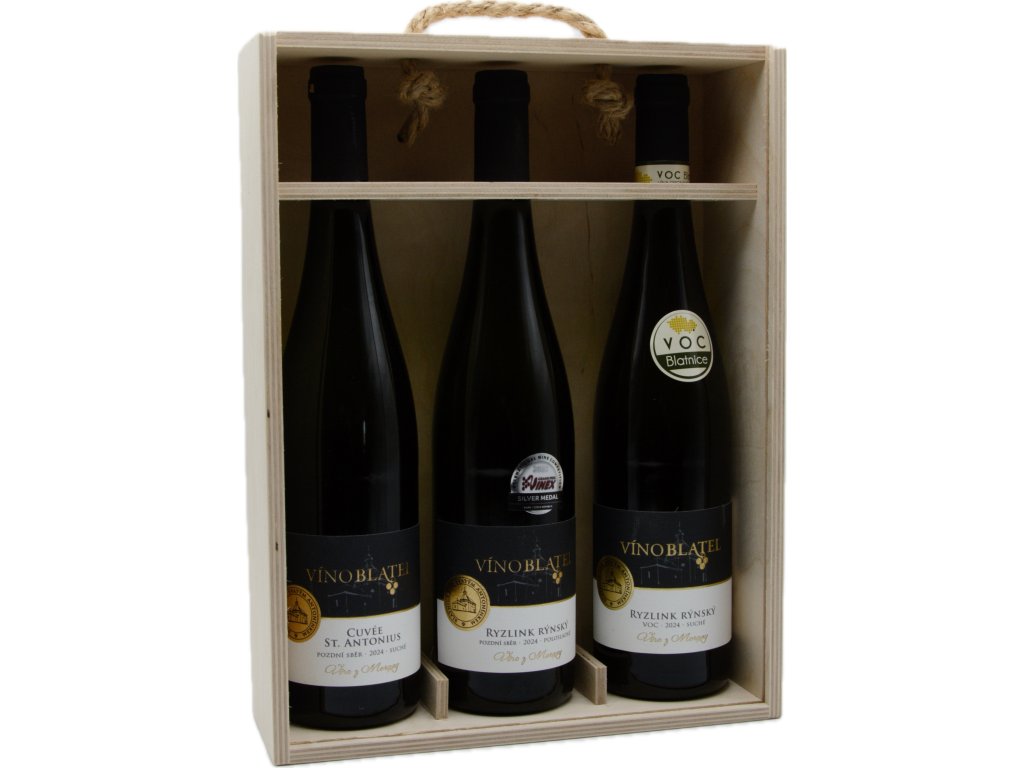 Dřevěná krabička na 3 láhve vína